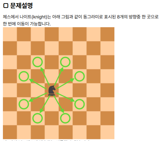 - 문제 요구사항: 나이트를 한 번 움직여서 이동할 수 있는 칸의 개수